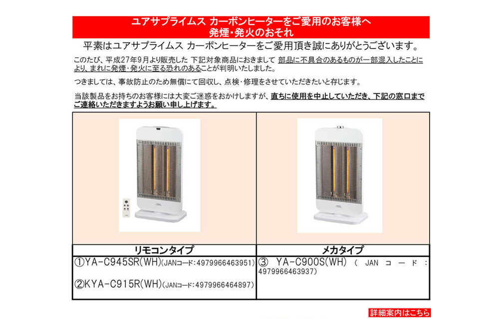 2021.05.31 「大切なお知らせ」を更新しました。(カーボンヒーターについての無償点検・修理のお知らせ)